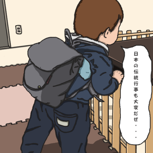 飾り付けも終わりお昼頃、ママの親がリュックとお餅を持ってお祝いに駆けつけてくれたのですが・・・。
